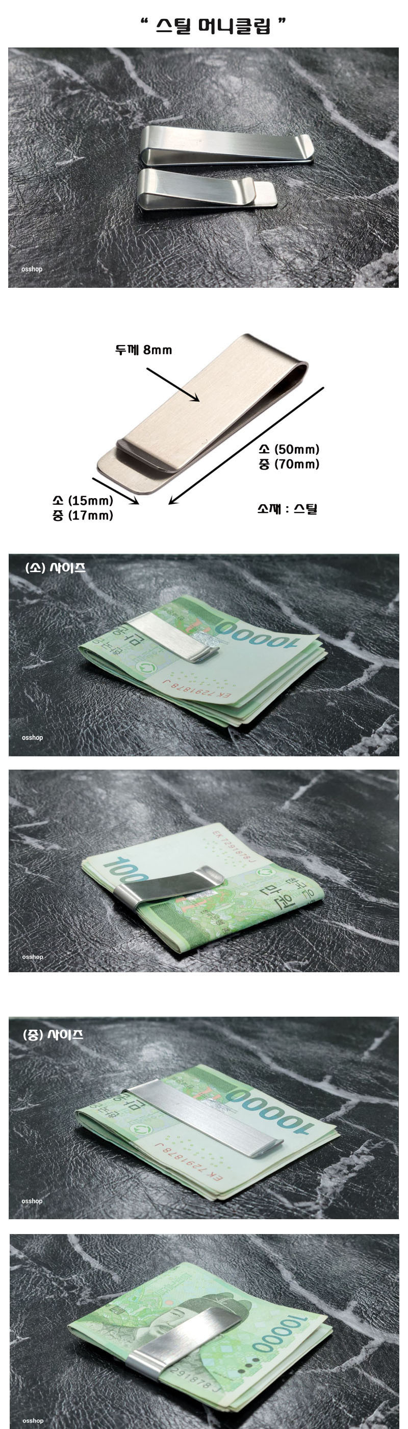 두꺼운 실버 메탈 머니클립 지폐클립 보관