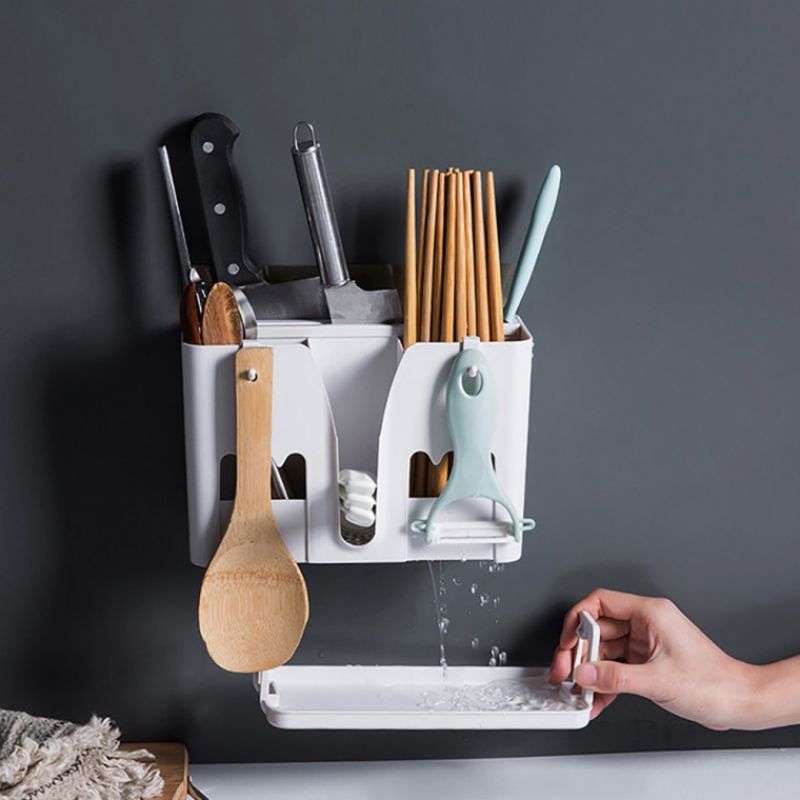 EAS 접착식 멀티 칼꽂이 수저통(화이트)