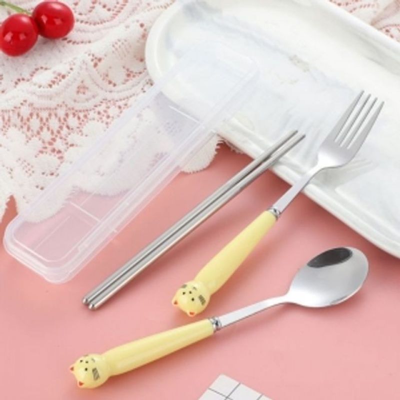 빼꼼냥이 휴대용 수저 포크 세트 동물포크 옐로우