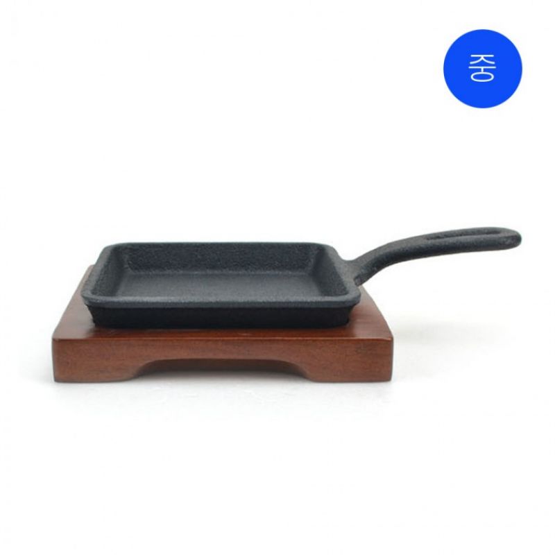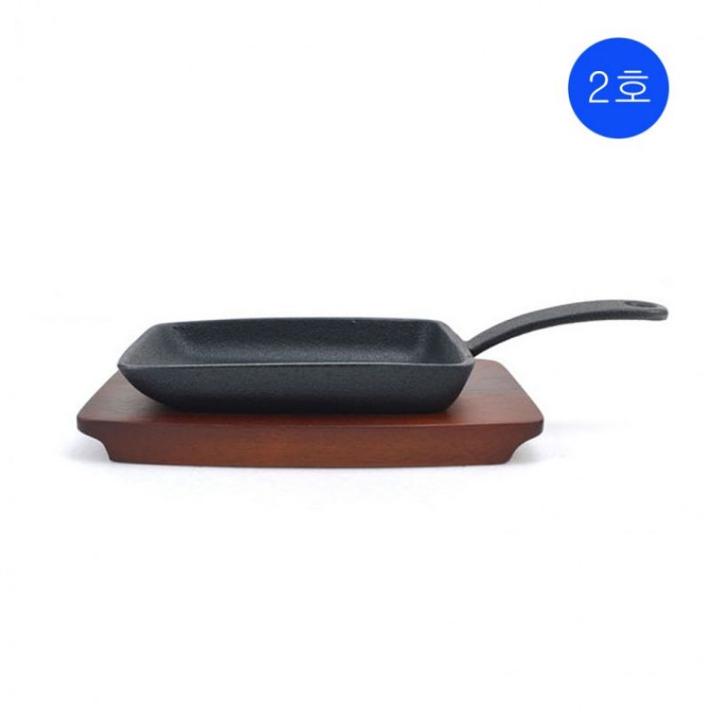 직사각 양손 직사각 주물팬 목판받침대 소