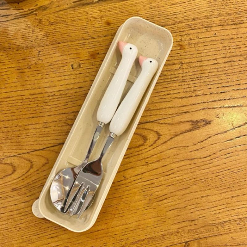 심쿵 오리 휴대용 숟가락 포크 세트 도시락 수저 핑크 스텐 1인수 저통