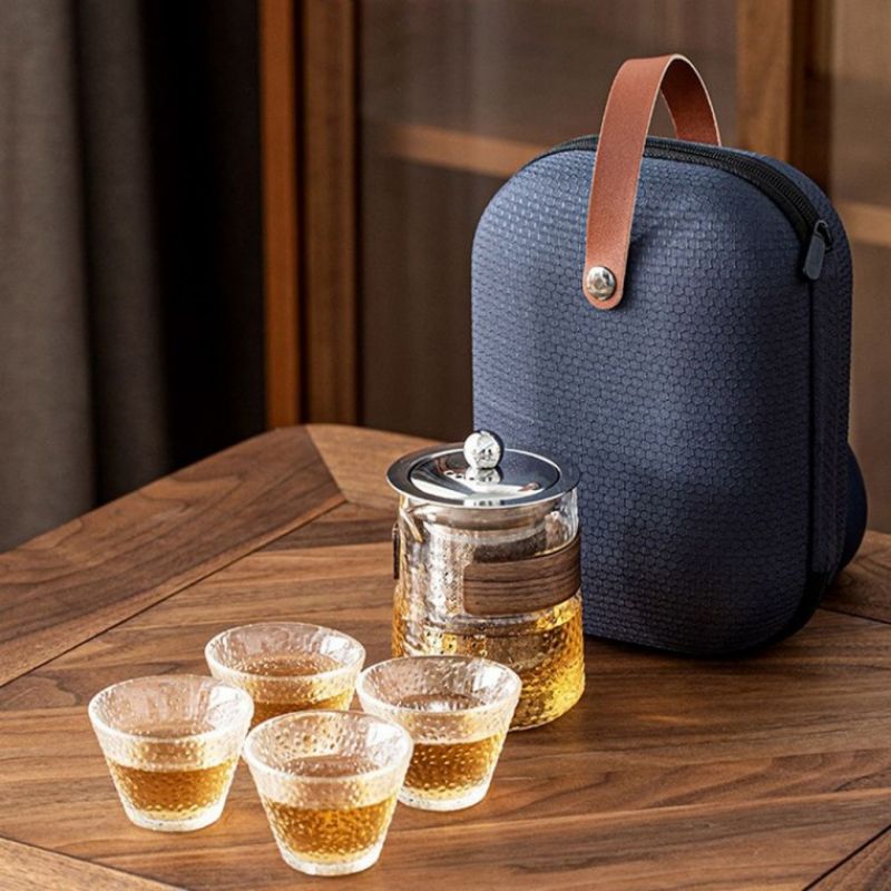 티센트 휴대용 내열유리 다기세트(4인) 찻잔
