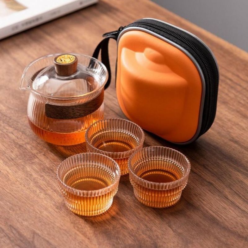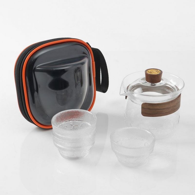 더우림 휴대용 내열유리 다기세트 3인 플리츠