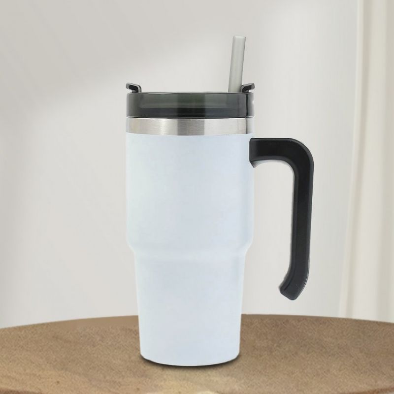 써머원 보온보냉 빨대 텀블러 자동차 보냉컵 화이트 차량 스텐 이중진공컵