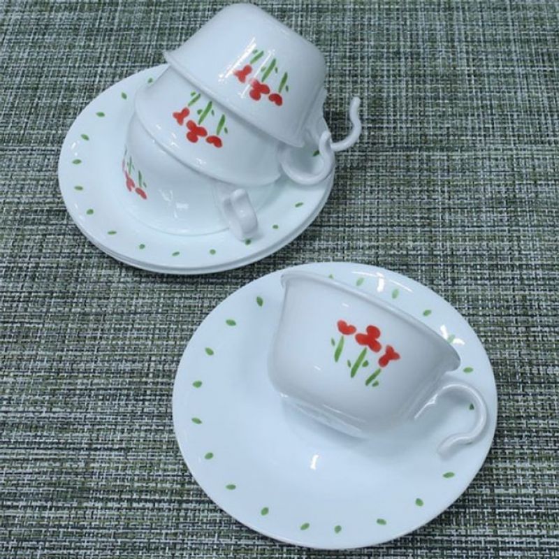 코렐 커피잔 세트 찻잔 커피컵 도자기컵 꽃무늬 4인조