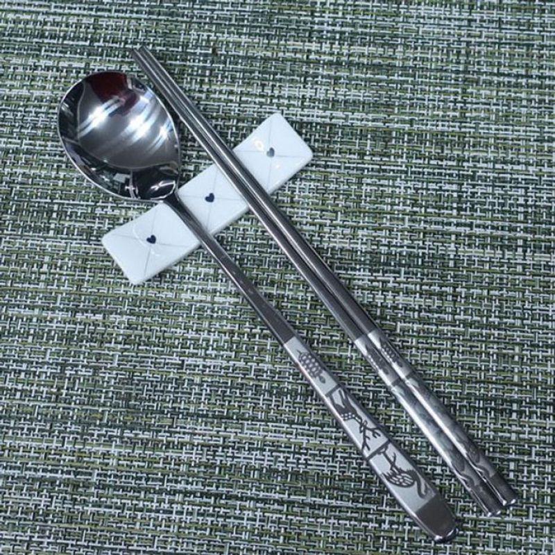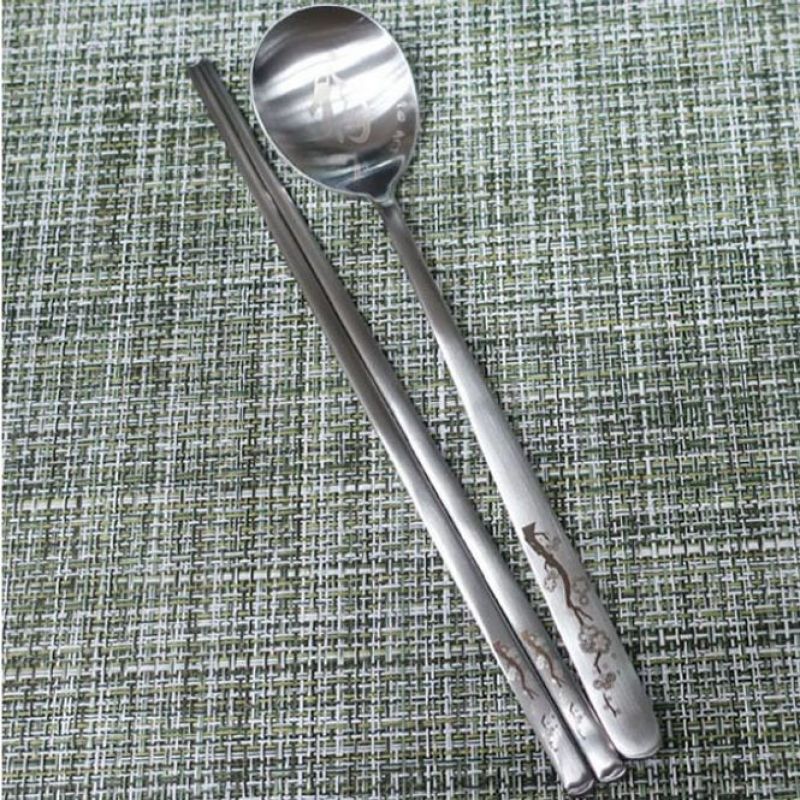 수저세트 스텐 티타늄 젓가락 숟가락 세트 장미 1P