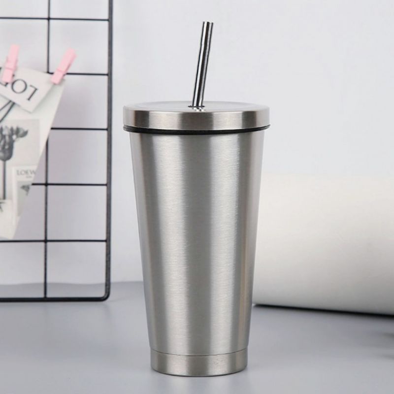 보온보냉 빨대 텀블러(500ml) (실버) 이중진공컵 콜드컵