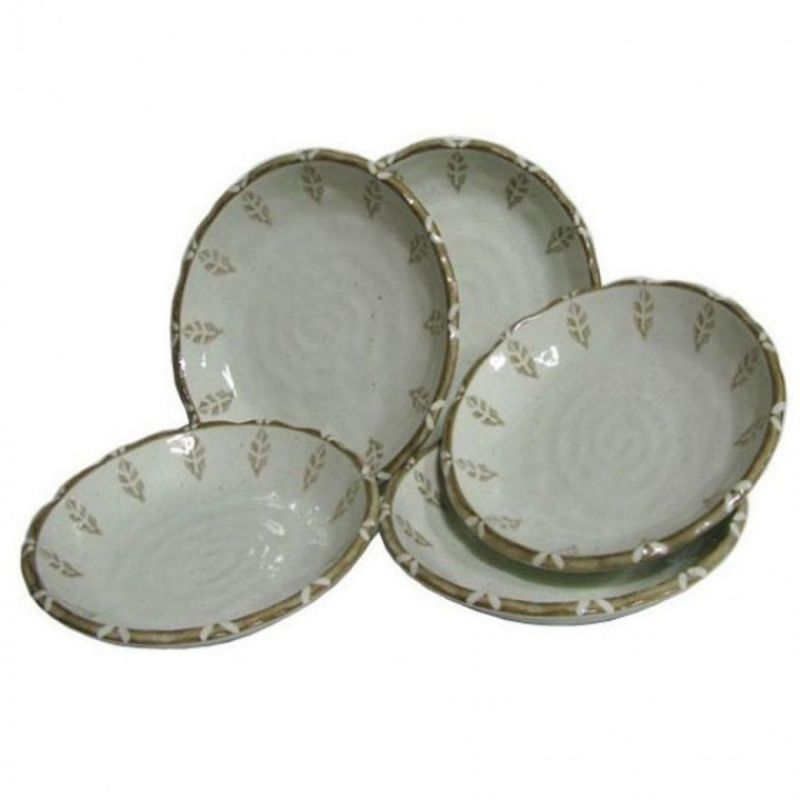 도자기 접시 세트 반찬 그릇 쿠프 식기 나뭇잎 5p