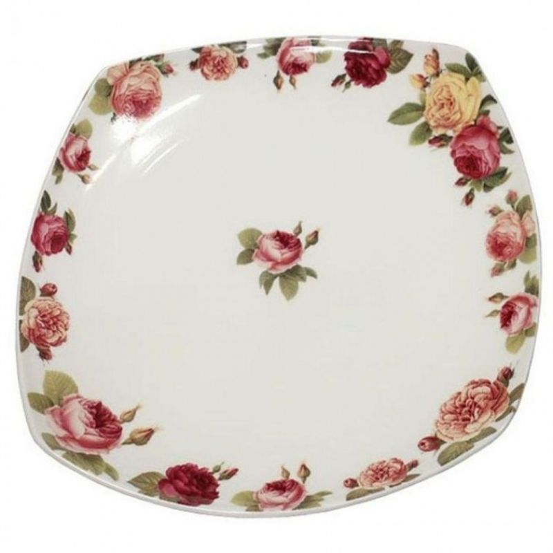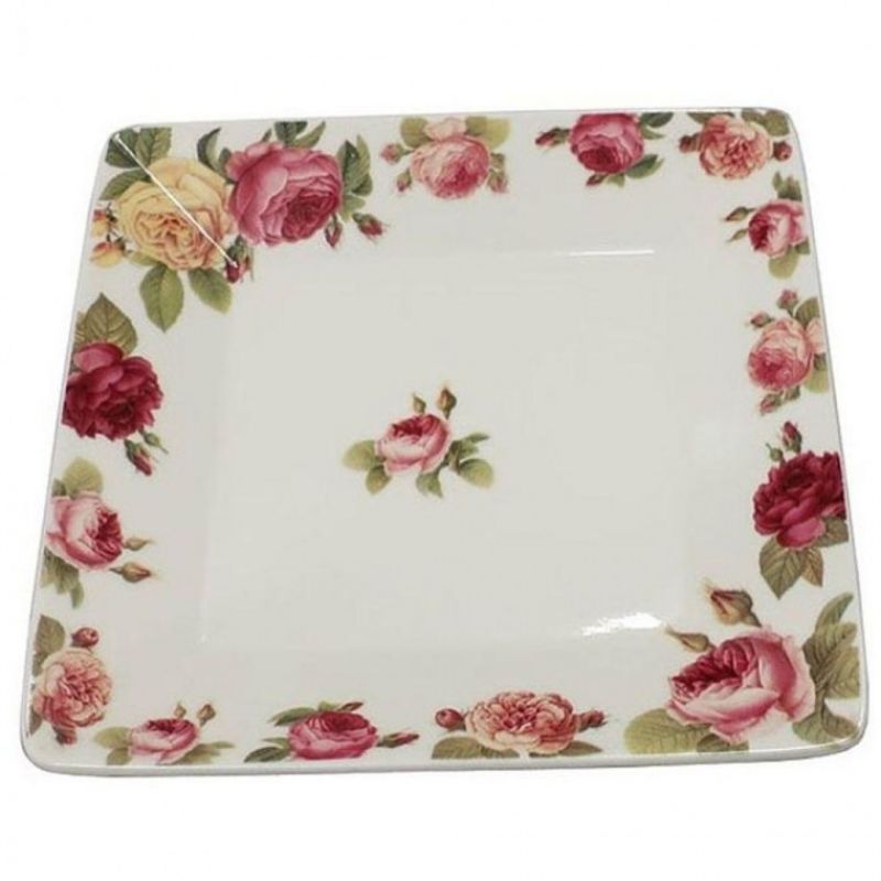 도자기 접시 반찬 그릇 식기 사각 접시 로즈 20.5cm