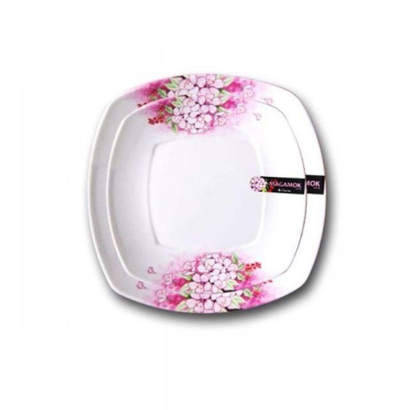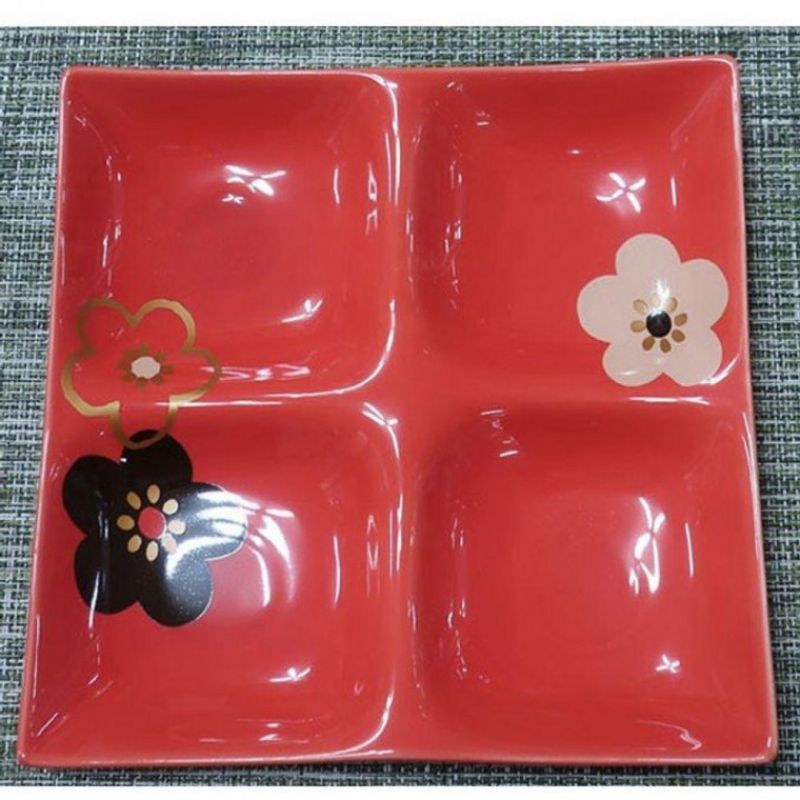 도자기 접시 반찬 그릇 사각 접시 식기 꽃무늬 22.5cm