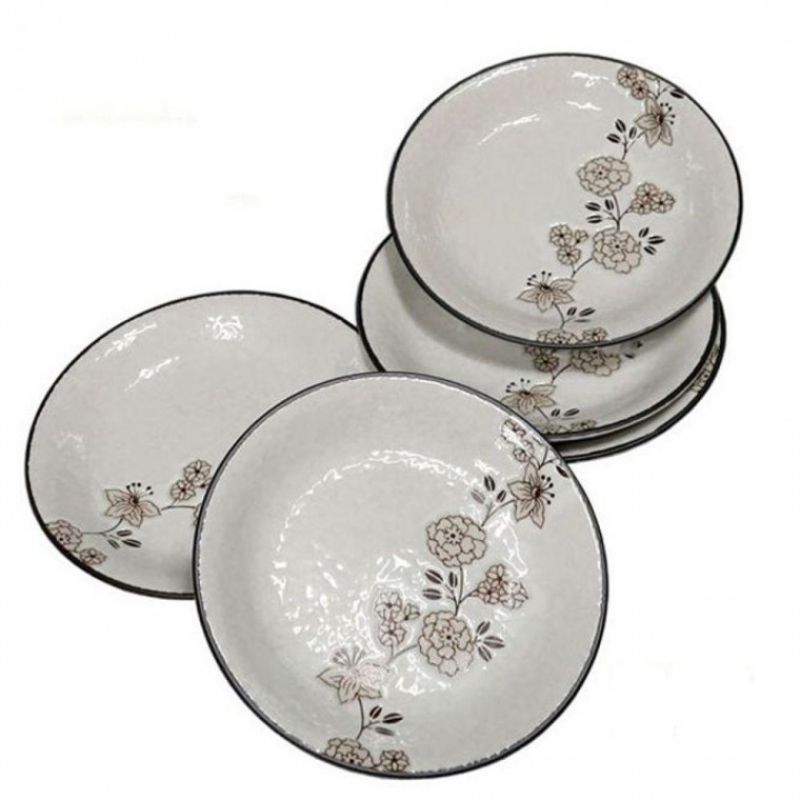 도자기 접시 반찬 그릇 원형 접시 식기 매화 20cm 5P