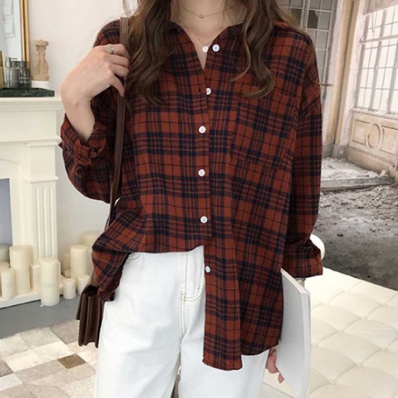 여자 대학생 가을룩 코디 긴팔 체크 남방 데일리옷